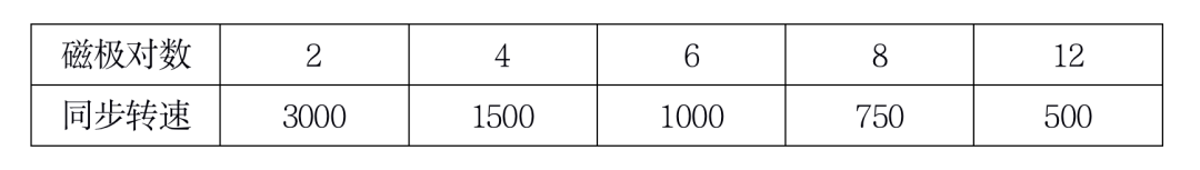 所以,转子的转速总要低于旋转磁场的转速,故称为异步电动机。根据电工学原理可知电机的旋转磁场的转速可推导公式为,式子中n0为同步转速,f为电源的频率、P为磁JI对数。当电机的磁JI对数一定时,同步转速的频率与转速成正比,而在额定频率下,同步转速与磁JI对数的关系如下表所示: